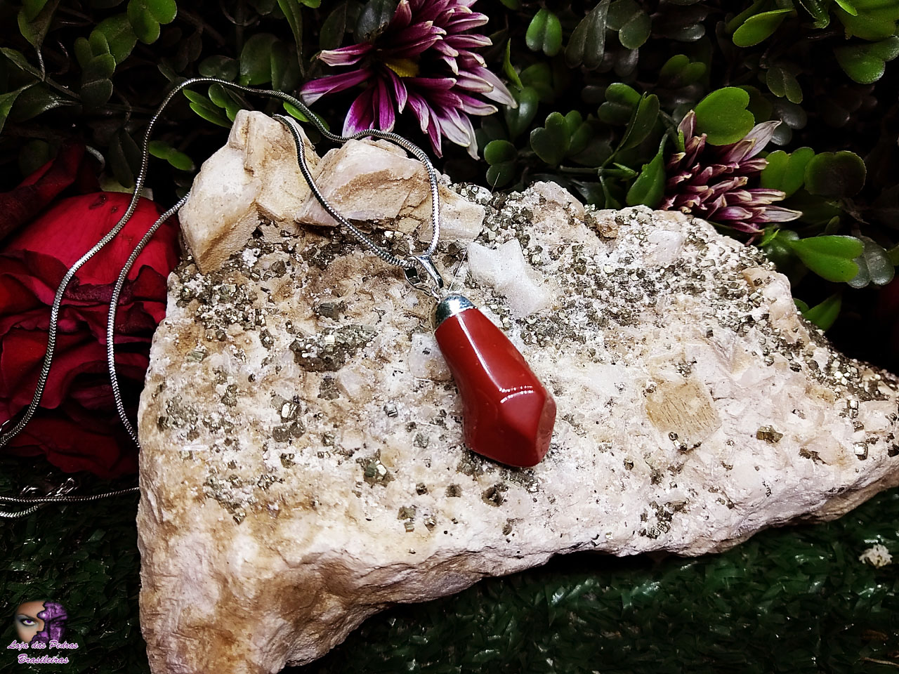Pingente de Ponta de Jaspe Vermelho Natural do Brasil. A peça da foto e suas descrições correspondem ao que será entregue (correntinha não incluída). O jaspe vermelho traz tranquilidade e unifica todos os aspectos da nossa vida. Ela tem propriedades curativas e lembra as pessoas de se ajudarem mutuamente. Seu nome significa pedra manchada ou salpicada. É considerada a “mãe de todas as pedras”. É um símbolo da justiça, essa pedra ajuda a amenizar e resolver problemas antes que eles se acentuem e seja tarde demais. Também estimula a função sexual e é considerada uma pedra afrodisíaca. Sua função está diretamente ligada ao instinto de reprodução e sobrevivência da espécie. Esta pedra tem sido utilizado desde sempre pela sua energia de proteção, propriedades terapêuticas e força espiritual. No Antigo Egito usava-se como amuleto de proteção, na Europa Medieval como protetor das colheitas. Em algumas tribos índias da América do Norte, era utilizado nos rituais de chuva. No misticismo Judaico, acredita-se que foi a primeira pedra a ser colocada na construção de Jerusalém.Na Venezuela existe uma grande extensão de Jaspe Vermelho que forma parte do chão de uma piscina natural. Esta é uma das maravilhas da natureza, um fabuloso presente para todos os sentidos. A pedra de Jaspe é outro membro da família das Calcedônias que pode ser encontrado no mundo inteiro em diversos tons de cor e textura. Seu nome significa “pedra manchada ou salpicada” e é considerada a “mãe de todas as pedras”. Muitos especialistas em curas e litoterapia sugerem o uso do Jaspe em elixires, isso porque a ação deste cristal é demorada por causa de sua baixa e branda vibração energética, o que significa que suas energias não superestimularão nenhuma parte do corpo. De fato, esta pedra é considerada mais eficaz se usada por um longo período de tempo pelo usuário, pois ela trabalha lentamente. Qualquer benefício de Jaspe leva tempo para acontecer, por ele ser um trabalhador metódico e meticuloso, contudo o resultado total do seu uso em práticas de cura será a unificação de todos os aspectos de sua vida. Com paciência, qualquer pessoa usando o Jaspe sentirá uma continuidade de espírito e de corpo que pode melhorar grandemente tanto no trabalho quanto no lazer. Além disso, cada cor do Jaspe tem qualidades específicas quando usada sozinha. O Jaspe funciona bem usado em conjunto com as Opalas e é recomendado para executivos, por tornar mais ágil o pensamento e também por ajudá-los a suportar o stress. Na antiguidade, o Jaspe tinha uma grande reputação como provocador de chuvas, talvez a coloração verde da pedra tenha sugerido sua associação com campos verdes, como sugere o autor de Lithica, no século IV: “Os deuses propícios ouvirão com atenção às preces, daqueles que usam o verde Jaspe polido, sua gleba seca, ele saciará com chuvas e enviará água para encharcar a terra.” No século IV, o Jaspe era reconhecido como dispersador de espíritos malignos e protetor daqueles que o usavam contra mordidas de criaturas venenosas. Um autor anônimo alemão do século XI ou XII assegurava que, se o Jaspe fosse colocado em uma mordida de cobra, o veneno seria totalmente absorvido da ferida. Além disso, esta linda pedra era incrustada em Ouro e usada sobre o peitoral dos sacerdotes no tempo de Aarão. O Jaspe pode ser usado em forma bruta ou lapidada, seu poder nos dá apoio durante períodos difíceis na vida trazendo tranquilidade, unifica todos os aspectos da nossa vida, tem propriedades curativas e lembra as pessoas de se ajudarem mutuamente. Entre os judeus, o Jaspe tinha um significado muito importante pois eles acreditavam que o Jaspe era a primeira pedra fundamental da nova Jerusalém. Os antigos gregos acreditavam que o Jaspe assegurava ao seu usuário harmonia interior e um matrimônio feliz. As mulheres acreditavam que o Jaspe as livrava das moléstias femininas e lhes proporcionava uma gravidez harmônica. Os antigos romanos usavam o Jaspe e acreditavam que ele afastava demônios e espíritos malignos. Para o corpo físico, o Jaspe é uma pedra muito poderosa e pode estancar sangramentos. Ele harmoniza o sistema nervoso, melhora as moléstias do fígado, estômago e baço. A água fortalecida com Jaspe (elixir) tem efeitos regeneradores sobre o corpo. Em casos de gravidez, diminui náuseas e previne os freqüentes vômitos, proporcionando às gestantes uma gravidez cheia de harmonia e amor ao nascituro. Na mente humana o Jaspe tem poderes harmonizantes sobre as flutuações negativas do corpo. Ele funciona como um pára-raios e nos livra dos influxos de outras pessoas, proporcionando um alto grau de harmonia interior, que se traduz em mais satisfação e compreensão no matrimônio, na amizade e no exercício da profissão. Na meditação, a penetração sobre o chacra impele as forças do Jaspe sobre a circulação sangüínea em todo nosso corpo. Com ele conseguimos uma fase de distensão e sentimos a nossa alma liberta de bloqueios e constrições. O Jaspe e as suas variedades costumam agrupar-se no grupo a que pertencem a Ágata e a Calcedônia , que incluem as variedades de quartzo brosas e granulosas. O Jaspe é uma variedade densa e opaca, microcristalina, de quartzo e os seus grãos são nos, semelhantes a grãos de açúcar ocorrendo em nódulos ou no enchimento de fissuras numa variedade de cores: castanho, branco, cinzento azulado, cinzento, laranja, amarelo, vermelho, rosado, verde, púrpura, multicolor. A característica mais referida do Jaspe é a de proteger e nutrir, razão pela qual lhe é dado o nome de “pedra nutridora”. É uma pedra do elemento Terra com uma energia de frequência lenta e estável, alinhada com o campo eletromagnético do planeta. Como tal, é uma pedra de enraizamento por excelência e também de estabilidade, conforto e segurança, aumentando a força física. A presença do Jaspe equilibra a a