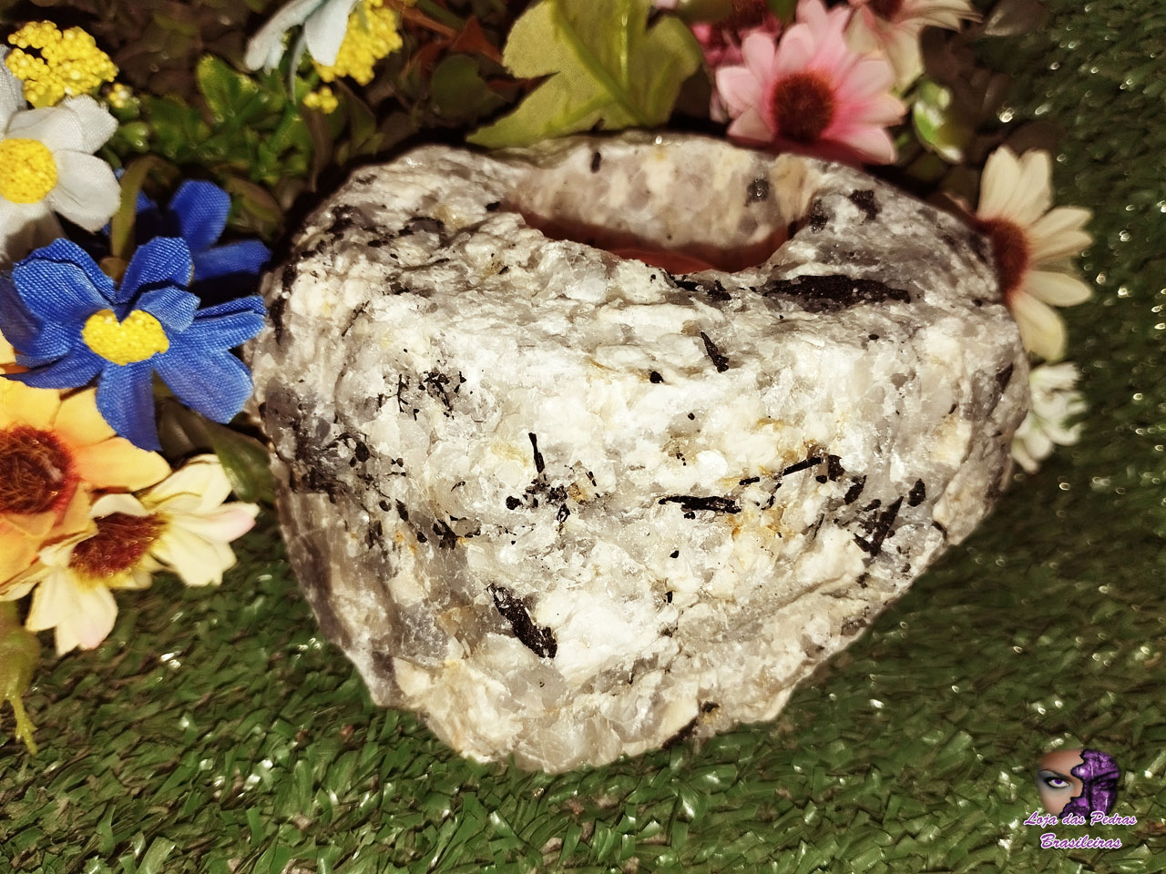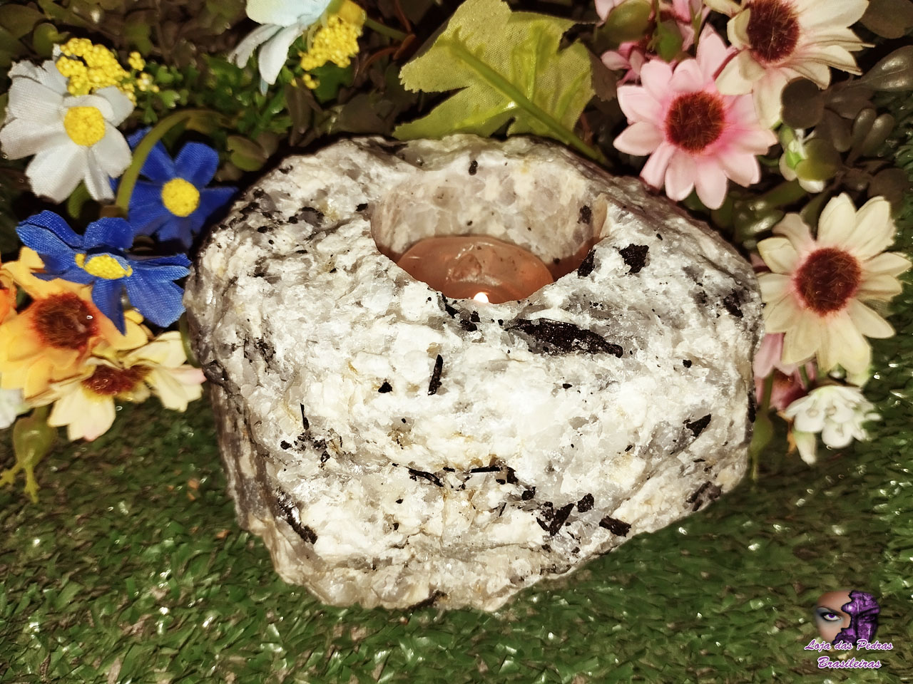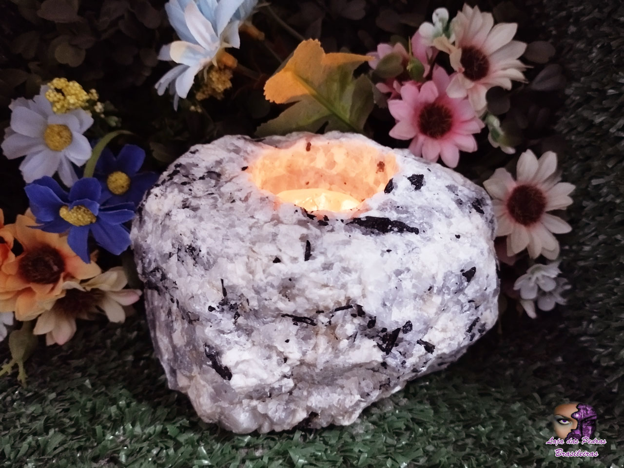 MARAVILHOSO Porta Velas de Quartzo com Turmalina Negra Natural do Brasil. Essa peça é um excelente presente!