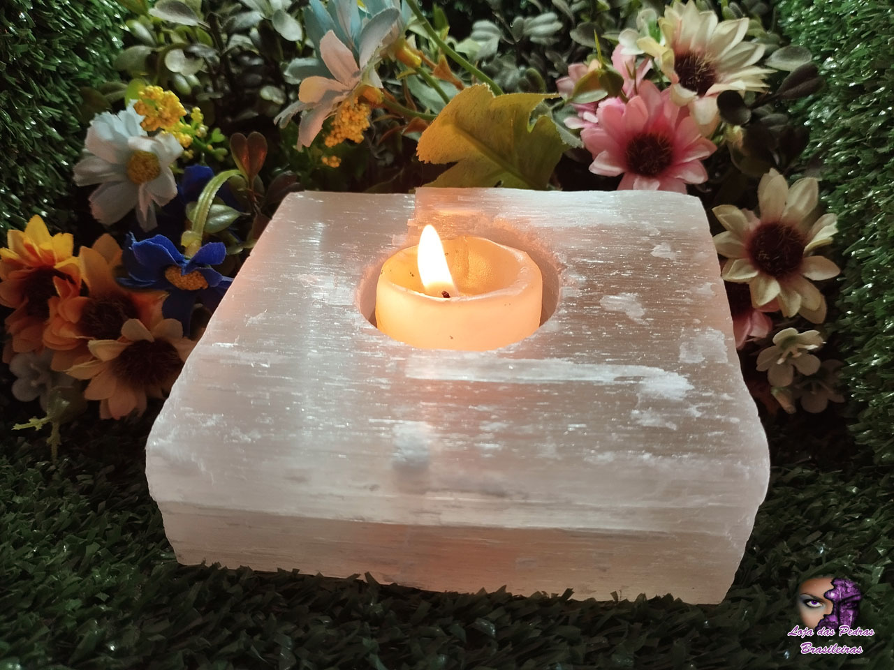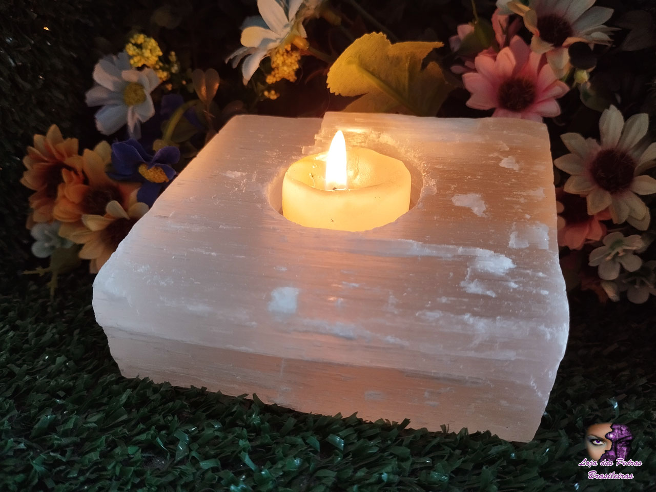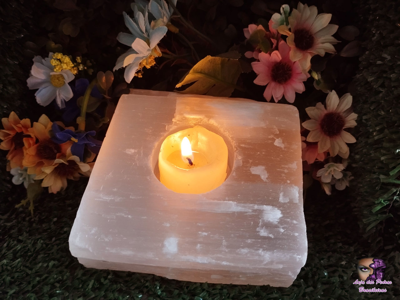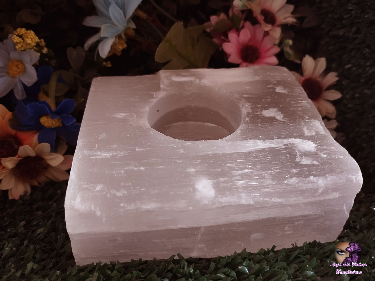 **NOVIDADE**!!! MARAVILHOSO Porta Velas de Selenita Natural do Brasil (acompanha vela). Essa peça é um excelente presente!